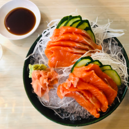 - 연어회: 신선한 연어를 회로 먹으면 연어의 고소한 맛과 부드러운 식감을 즐길 수 있습니다. 고추냉이와 간장을 곁들여 먹습니다.