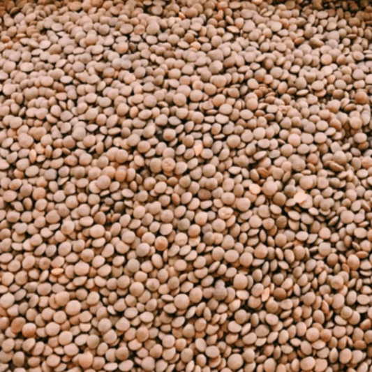 표면이 매끄럽고 약간 도톰하며 식감이 단단한 편입니다. 장시간 조리에도 모양이 잘 유지되어 샐러드나 반찬용으로 적합합니다. 식이섬유와 단백질 함량이 높고, 약간 고소한 맛이 특징입니다. - 갈색 렌틸콩(Brown Lentils)